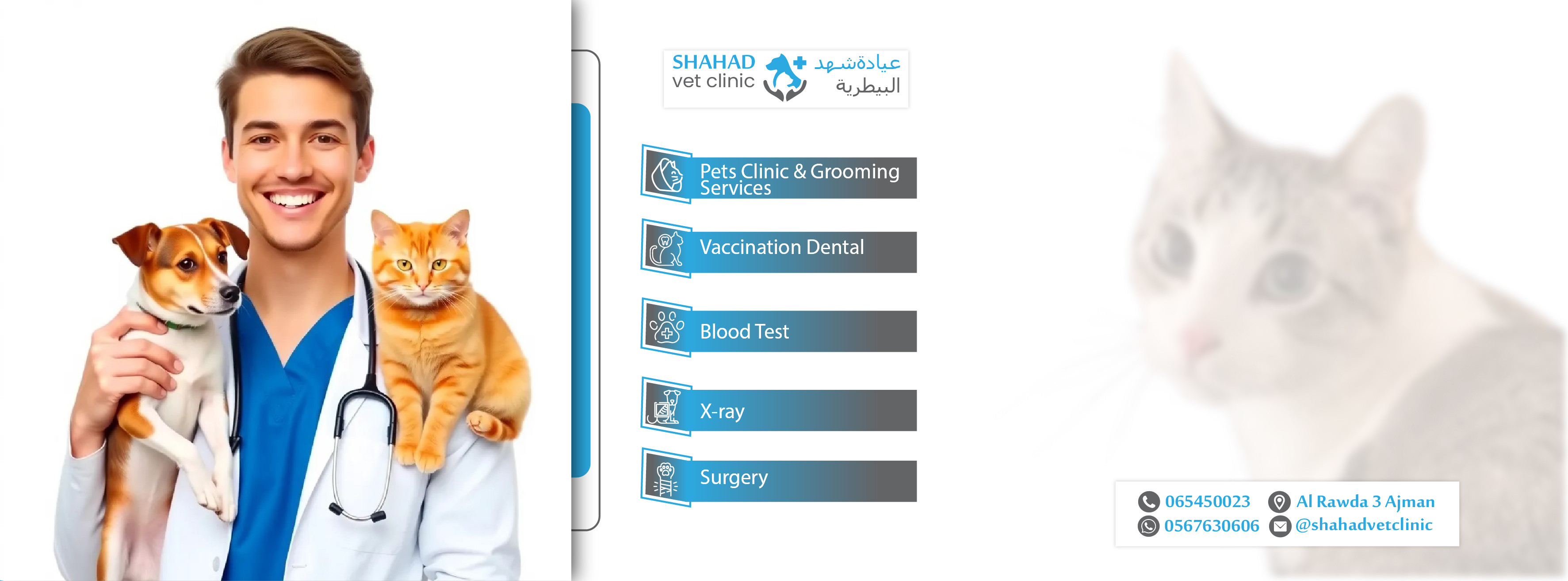 Many thanks to the wonderful team at Shahad Veterinary Clinic for their wonderful care of my beautiful cat! Your professionalism, kindness and dedication truly made a huge difference during a difficult time. I am so grateful for the compassionate treatment and expertise you provided, ensuring the safety and comfort of my cat. It is clear that you all truly care about the animals you treat, and I will always trust you with their care. I highly recommend this clinic to anyone looking for top notch veterinary services!